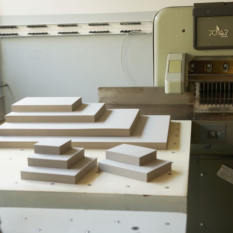 Eigene Produktion von Graukarton/pappen ab 5kg auf individuellem Format geschnitten.