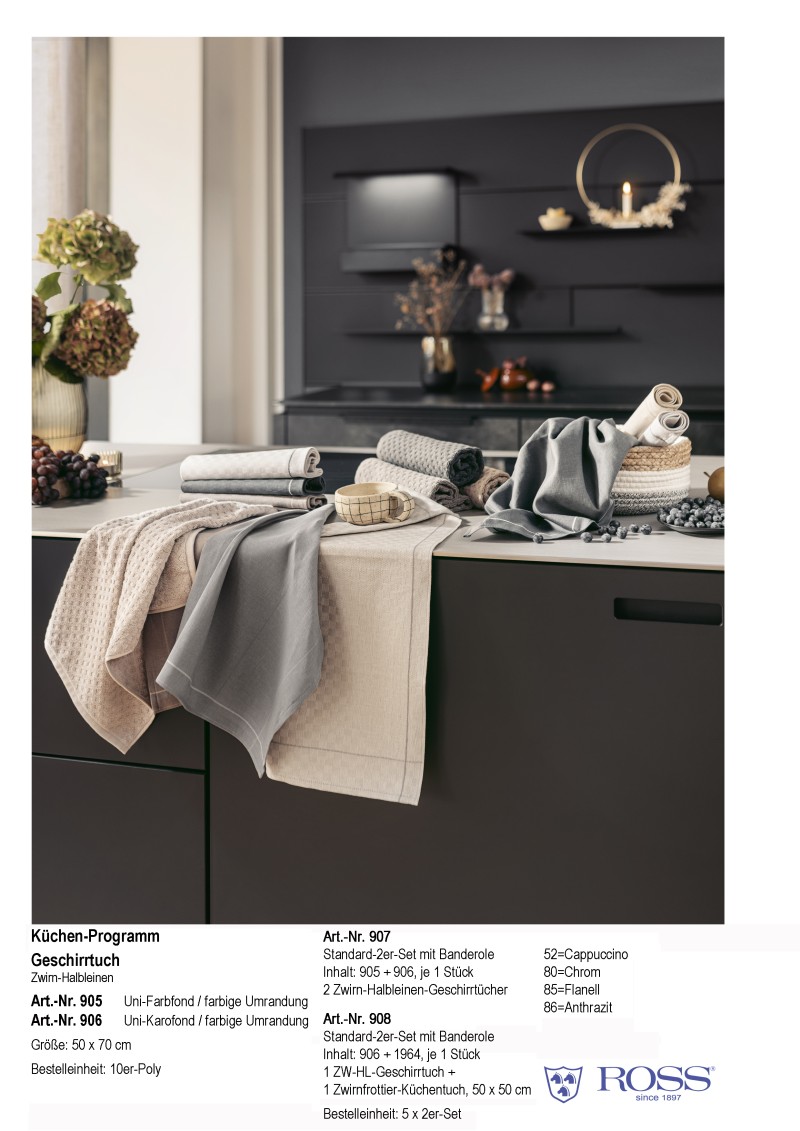 Wir sind ein deutscher Hersteller von hochwertigen Heimtextilien mit langjähriger Erfahrung in der Entwicklung und Produktion von Frottierwaren, Geschirrtüchern und dekorativen Küchentextilien für den Handel.